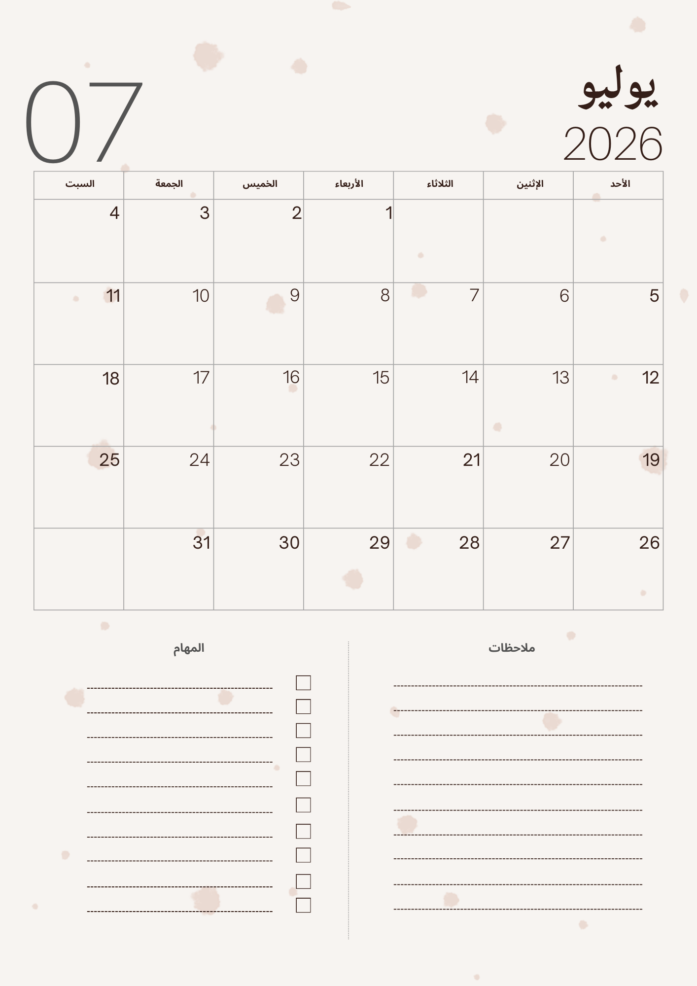 تصميم احترافي ومنظم يساعدك في تنظيم مهامك اليومية وأهدافك لعام 2026 باللغة العربية